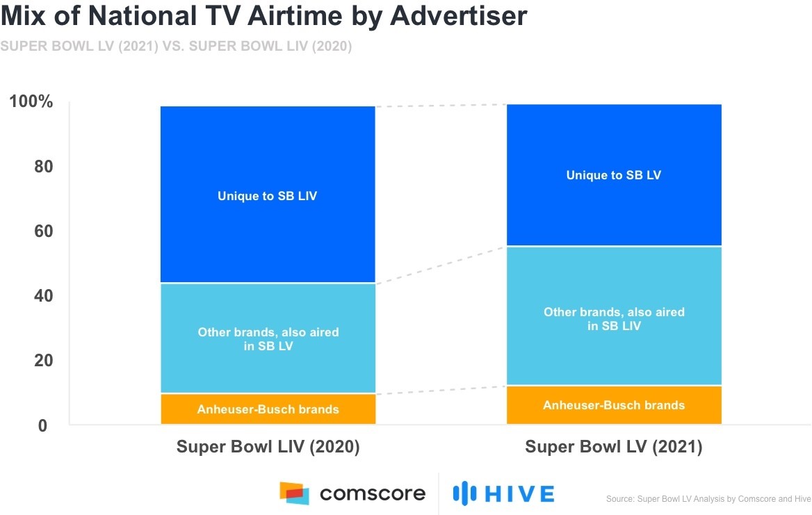 Here are the key insights from Super Bowl LV, courtesy of Comscore and Hive: