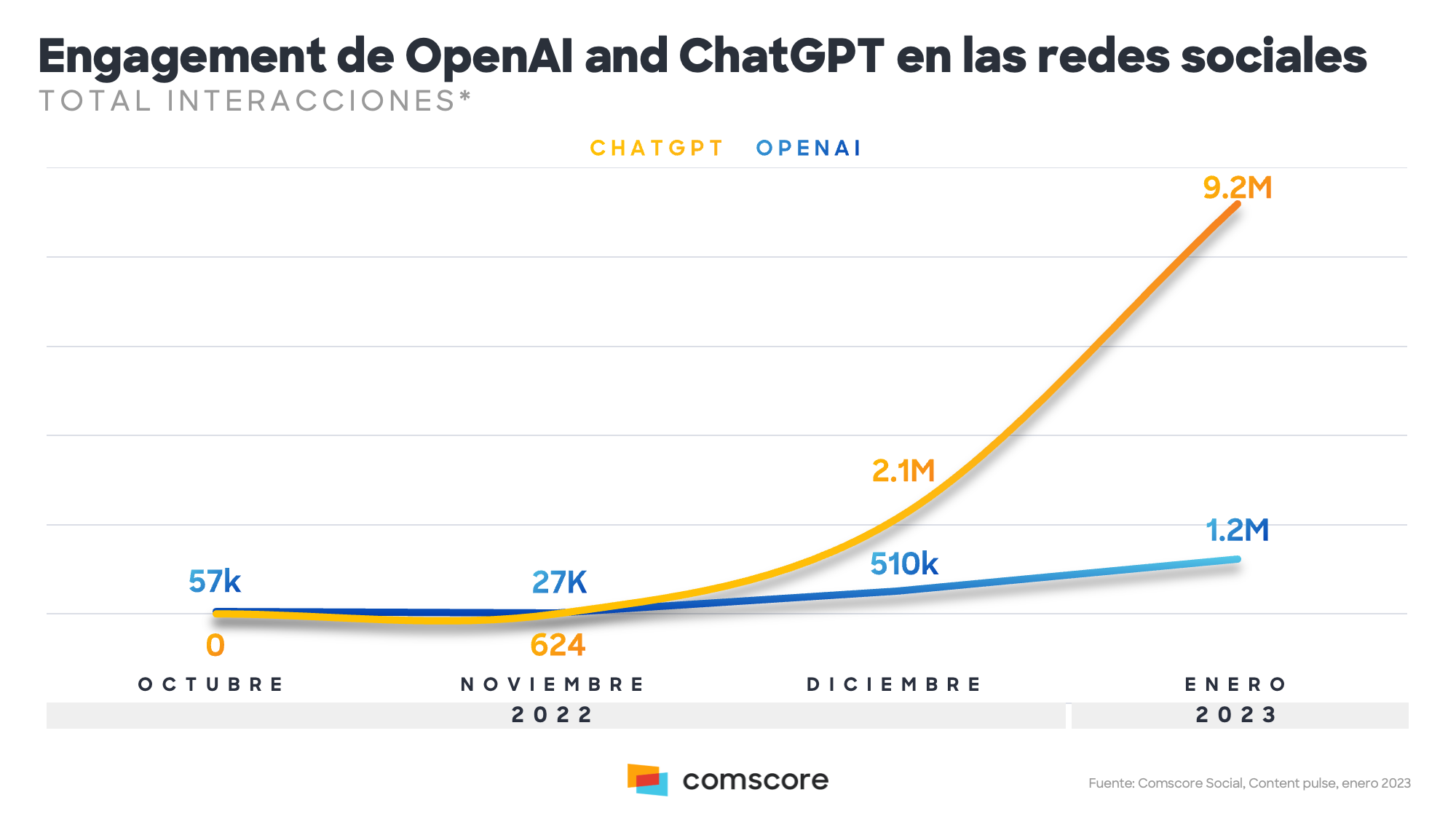 Tanto OpenAI, la organización de investigación que desarrolló ChatGPT, como el propio ChatGPT están presentes en las conversaciones de las redes sociales. En enero de 2023, OpenAI registró 1.2 millones de interacciones, más del doble de lo que generó en todo el cuarto trimestre de 2022. En cuanto a ChatGPT, las cifras registradas en enero 2023 son aún más altas, un total de 9,2 millones de interacciones, lo que supone un aumento del 330 % en comparación con el último trimestre del 2022. La nube de palabras clave sobre inteligencia artificial, refleja la relevancia de estos términos en las redes sociales.